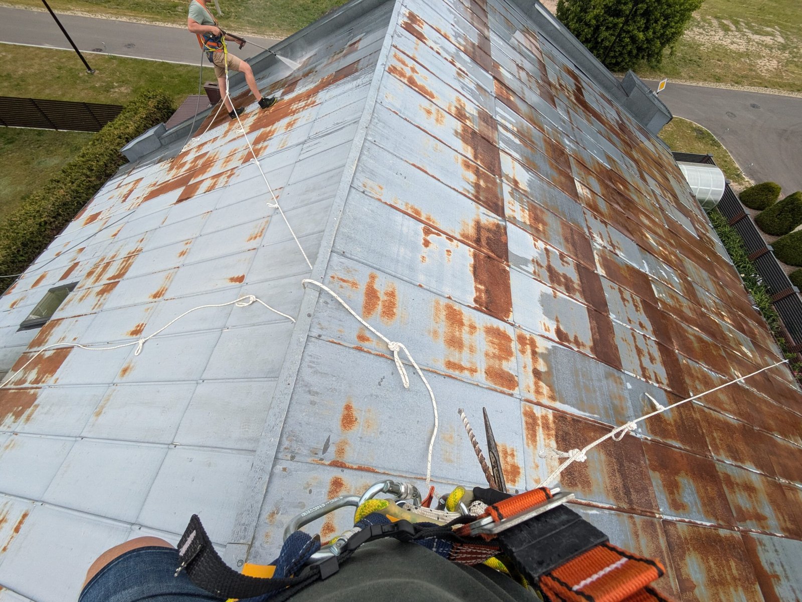 Prieš dažymą atliekame stogo plovimą aukštu slėgiu, kad paviršius būtų švarus ir dažai gerai sukibtų